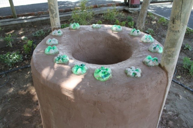 When Malvern Green Space asked me to train with GEA last September, I had no idea I’d be talking someone in Capetown about how to make cob eco benches 6 months later! Candice Mostert is educating people in South Africa about the dangers of burning plastic, which happens frequently as there’s no formal waste disposal service. Teaching people how to ecobrick provides an eco-friendly alternative and creates useful structures like this well:-